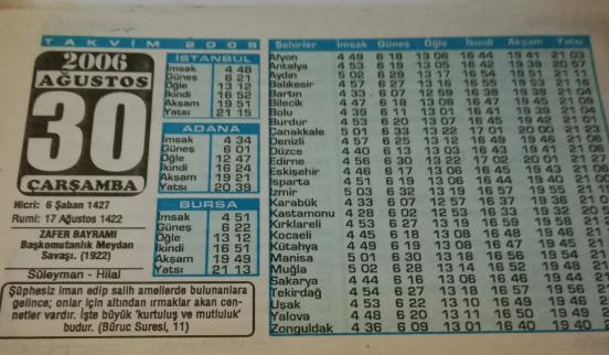 30 Ağustos 2006-Orijinal Takvim Yaprağı-Doğum Günü-Söz,Nişan,Nikâh,Düğün ve Önemli Günler Hediyesi-Bizim Anadolu Takvimleri-Ayet(Buruc Suresi:11)-Zafer Bayramı-Süleyman,Hilal-Papatyanın Faydaları, en son 2 ay önce güncellenmiştir.