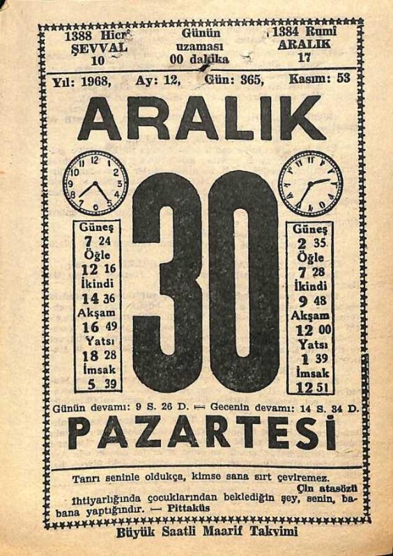 30 Aralık 1968 Takvim Yaprağı - Doğum Günü Hediyesi EFM(N)11048, en son 19 gün önce güncellenmiştir.