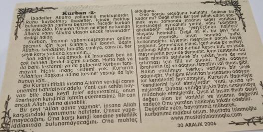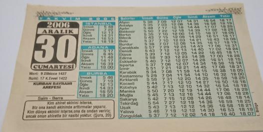 30 Aralık 2006-Orijinal Takvim Yaprağı-Doğum Günü-Söz,Nişan,Nikâh,Düğün ve Önemli Günler Hediyesi-Bizim Anadolu Takvimleri-Ayet(Şura:20)-Kurban Bayramı Arefesi-Saim,Berre-Kurban-2-, en son 2 ay önce güncellenmiştir.