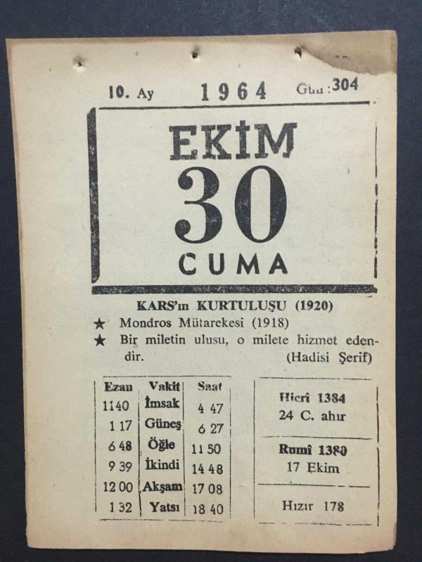 30 EKİM 1964-TAKVİM YAPRAĞI-DOĞUM GÜNÜ HEDİYESİ,KARSIN KURTULUŞU 1920,MONDROS MÜTAREKESİ,1918,HUTBE, en son 8 ay önce güncellenmiştir.