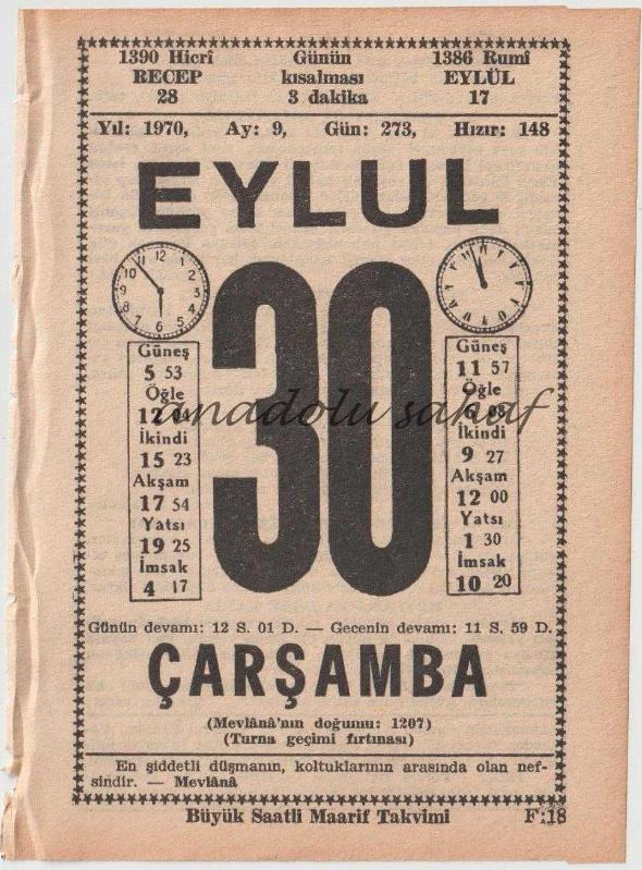 30 Eylül 1970 / Büyük Saatli Maarif Takvimi