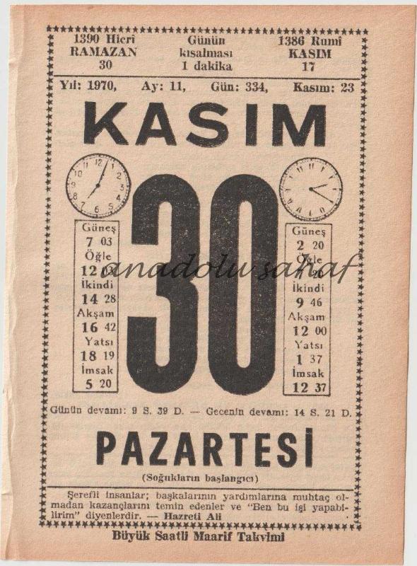 30 Kasım 1970 / Büyük Saatli Maarif Takvimi