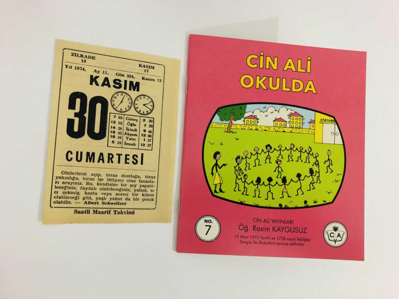 30 Kasım 1974 hediyelik orijinal Saatli Maarif takvim yaprağı (Cin Ali kitabı hediyeli:) başlıklı ürün, Efemera, Müzik, Sinema > Belge ve Evraklar > Takvimler kategorisi altında İkinci El olarak satılmaktadır.
