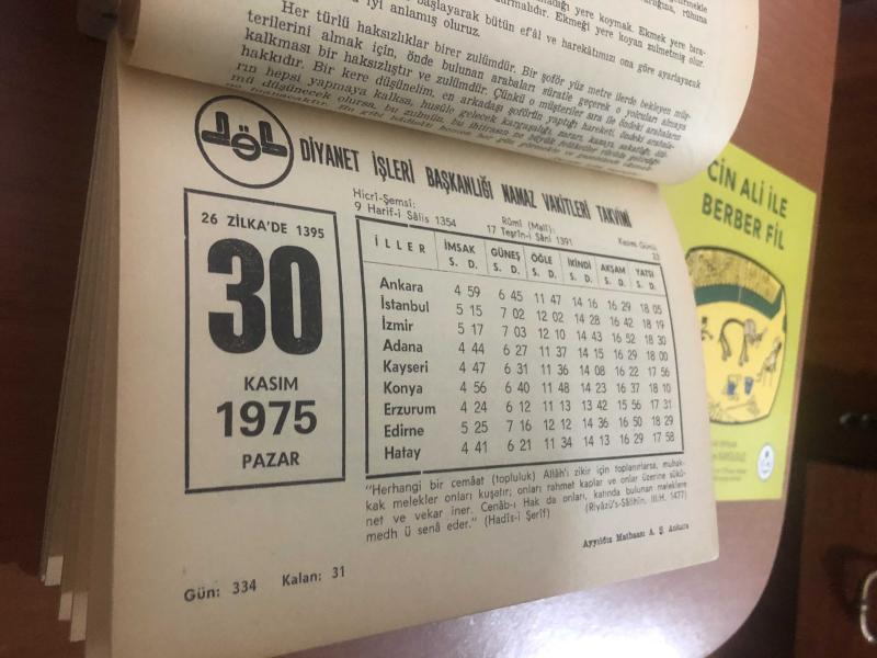 30 Kasım 1975 hediyelik orijinal Diyanet takvim yaprağı (Cin Ali kitabı hediyeli:), en son 7 ay önce güncellenmiştir.