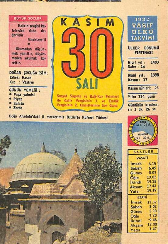30 Kasım 1982 Takvim Yaprağı - Doğum Günü Hediyesi EFM(N)11880, en son 20 gün önce güncellenmiştir.