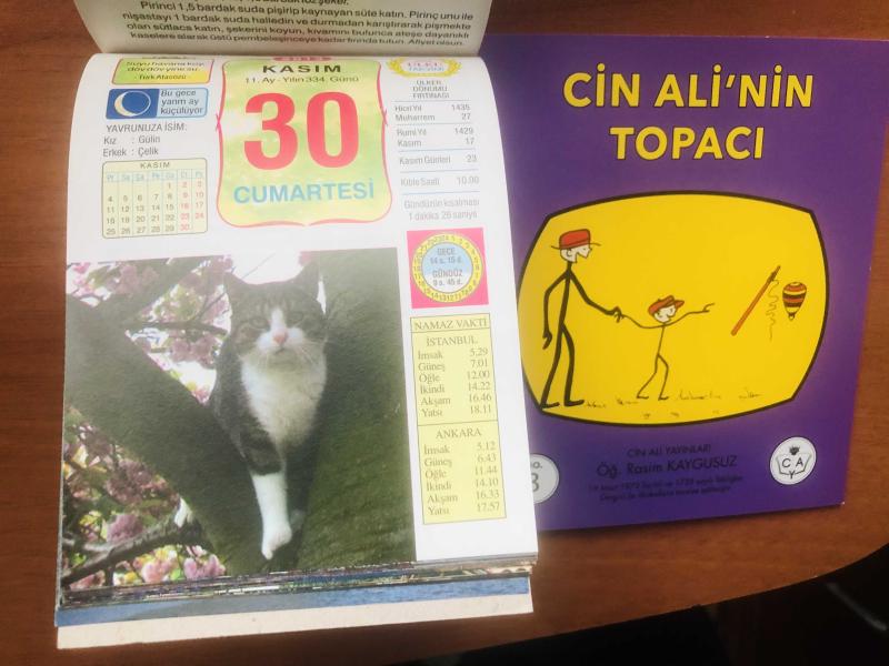 30 Kasım 2013 hediyelik orijinal Ülkü takvim yaprağı (Cin Ali kitabı hediyeli:) başlıklı ürün, Efemera, Müzik, Sinema > Belge ve Evraklar > Takvimler kategorisi altında İkinci El olarak satılmaktadır.