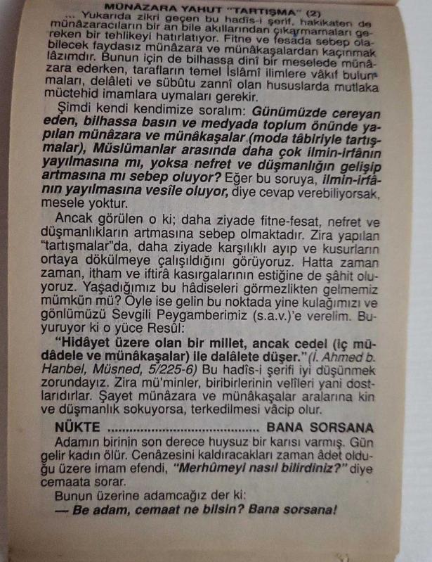 Kitapsız hayat kör,sağır,dilsiz yaşatmaktır.Kitap,zekayı kibarlaştırır.Kitaplar beni ortaya çıkardı.Milletlerin aklı,kitapla gelişir ve büyür.Kimler fazla okuyorsa,az okuyanlara hükmeder.Okumadan geçen bir gün,kaybedilmiş bir gündür.Söz uçar,yazı kalır.Yazı ile saptanmayan her şey,kaybolmuş demektir.Alem unutmuş,kalem (kitap) unutmamış.Bir kitabın içinde birçok ülkeler gezebilirsiniz.En iyi kitapları önceden okuyunuz,çünkü hepsini okuma fırsatını bulamayabilirsiniz.Bizde kitap baş üstünde taşınacak kadar makbuldur.Yazılı kağıdın üzerine basılmaz bile.”Hacı hacıyı Mekke’de,derviş dervişi tekkede bulur,demişler.Alim de alimi bizim çarşıda bulur.”Pirimiz Arslan Kaynardağ’dır,Nizamettin Aktuç’tur,Raif Yelkenci’dir.Gutemberg (1400-1468) matbaayı buldu.
