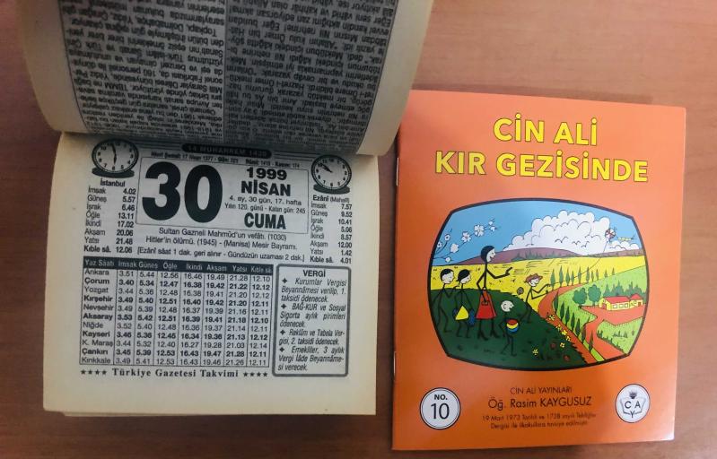 30 Nisan 1999 orijinal Türkiye gazetesi takvim yaprağı (Cin Ali kitabı hediyeli :), 4 yıl önce satışa sunulmuştur.