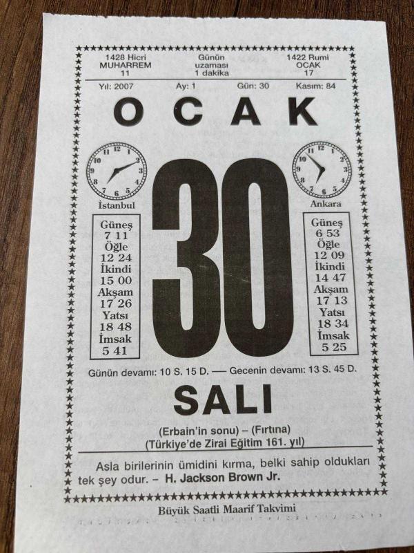 30 OCAK 2007 - TAKVİM YAPRAĞI - DOĞUM GÜNÜ HEDİYESİ - BÜYÜK SAATLİ MAARİF TAKVİMİ - H. JACKSON BROWN JR. - ERBAİN - ÜNLÜ KARİKATÜRİST ALİ ULVİ ERSOY VEFAT ETTİ - RUS YAZAR ANTON ÇEHOV DÜNYAYA GELDİ, en son 8 ay önce güncellenmiştir.