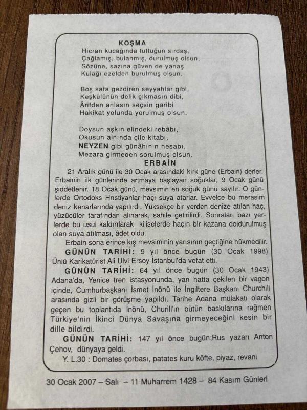 Orijinal takvim yaprağıdır.