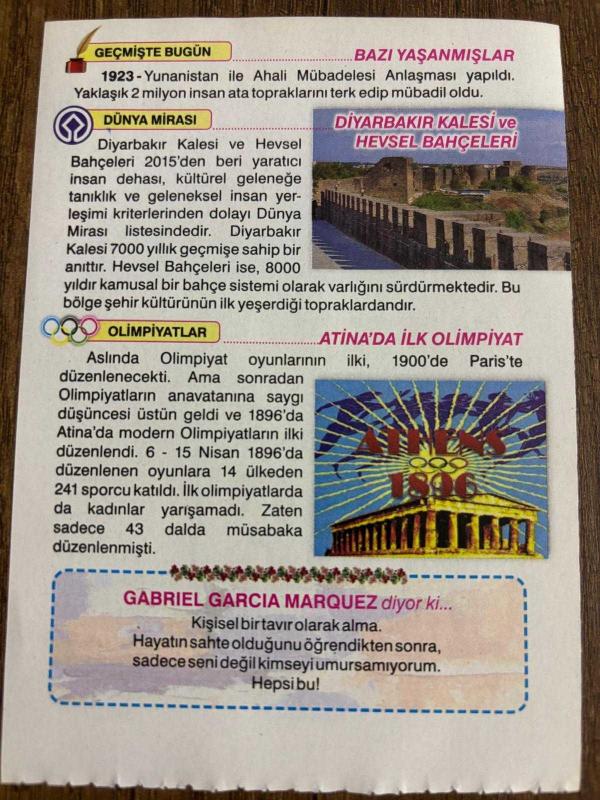 30 OCAK 2020 - TAKVİM YAPRAĞI - DOĞUM GÜNÜ HEDİYESİ - BÜYÜK SAATLİ MAARİF TAKVİMİ - İSTANBUL, KADIKÖY - YUNANİSTAN İLE AHALİ MÜBADELESİ ANLAŞMASI YAPILDI 1923 - DİYARBEKİR KALESİ VE HEVSEL BAHÇELERİ - ATİNA'DA İLK OLİMPİYATLAR - GABRIEL GARCIA MARQUEZ, en son 8 ay önce güncellenmiştir.