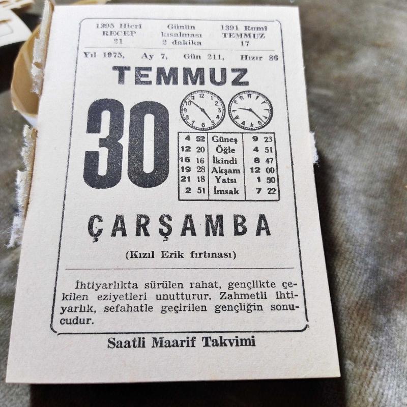 30 TEMMUZ 1975 SAATLİ MAARİF TAKVİM YAPRAĞI, en son 1 yıl önce güncellenmiştir.