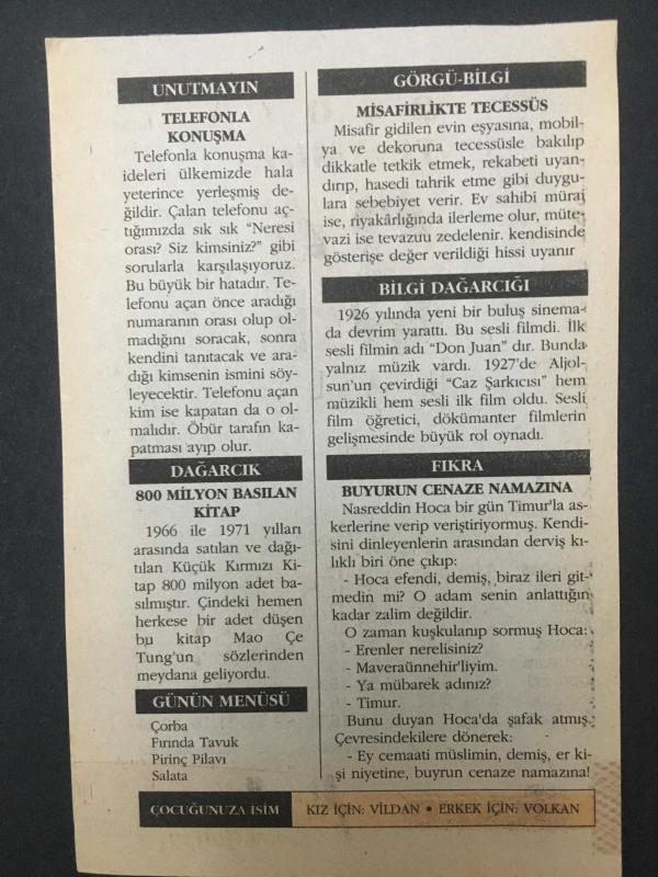 Gazeteler,dergiler,kitaplar harika hediyelerdir.Otantik,orijinal,nadir ve eski gazeteler,dergiler,kitaplar,efemeralar,objeler.Gazeteler bir aynadır.Kitaplar sadece okumak için değil birlikte yaşamak içindir . Kelimeler , notalar , sayılar kardeştirler.Kitaplar insanı binbir gözlü yapar.