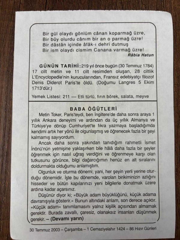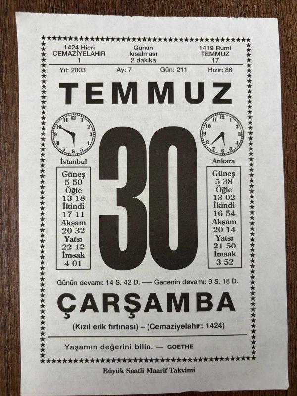 30 TEMMUZ 2003 - TAKVİM YAPRAĞI - DOĞUM GÜNÜ HEDİYESİ - BÜYÜK SAATLİ MAARİF TAKVİMİ - GOETHE - RABİA HATUN - FRANSIZ EDEBİYATÇI DENİS DİDEROT ÖLDÜ - BABA ÖĞÜTLERİ, en son 8 ay önce güncellenmiştir.