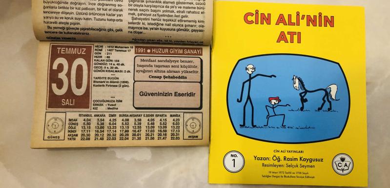 30 Temmuz 1991 orijinal Huzur takvim yaprağı (Cin Ali kitabı hediyeli :), 2 yıl önce satışa sunulmuştur.
