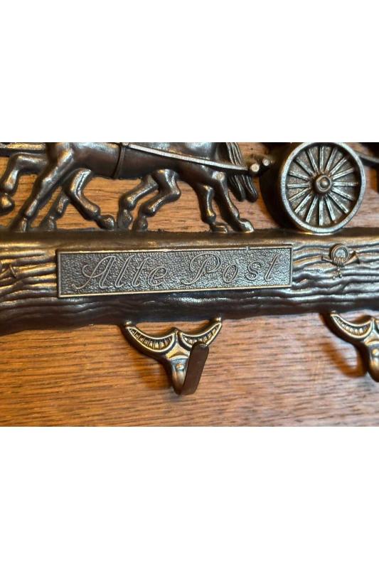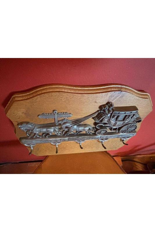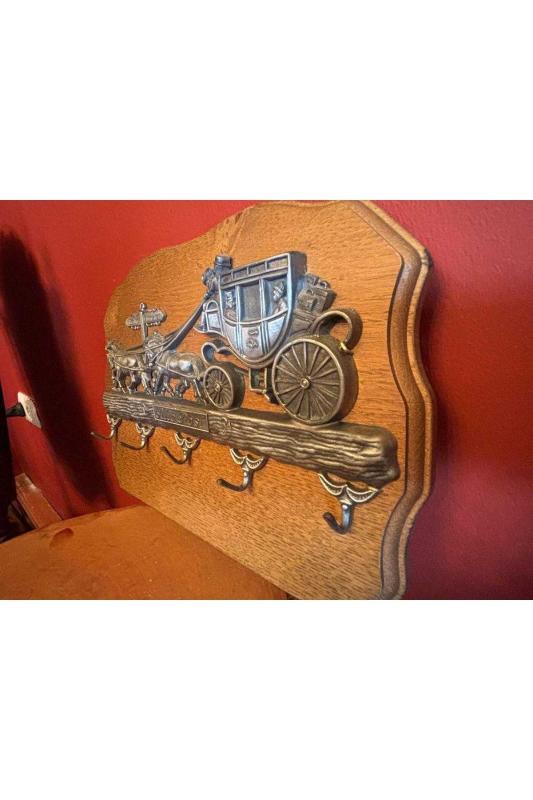 30 cm 21,5 cm ölçülerinde alman askılık anahtarlık başlıklı antika/koleksiyon objesinin menşei belirtilmemiştir. Objenin ait olduğu dönem bilinmeketedir.