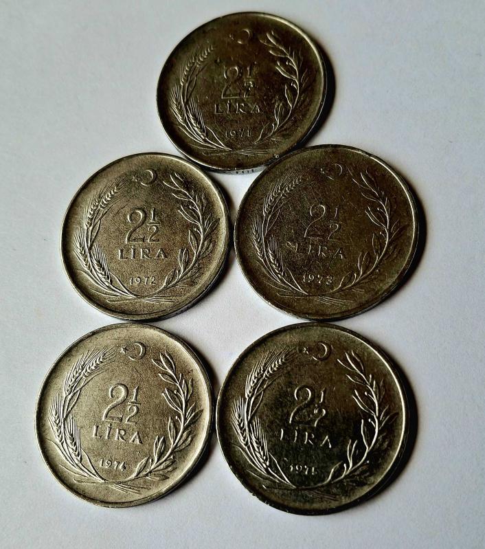 302// 2,5 Lira (1971,72,73,74,75) Yılları 5'li set Çil durumda, 8 ay önce satışa sunulmuştur.
