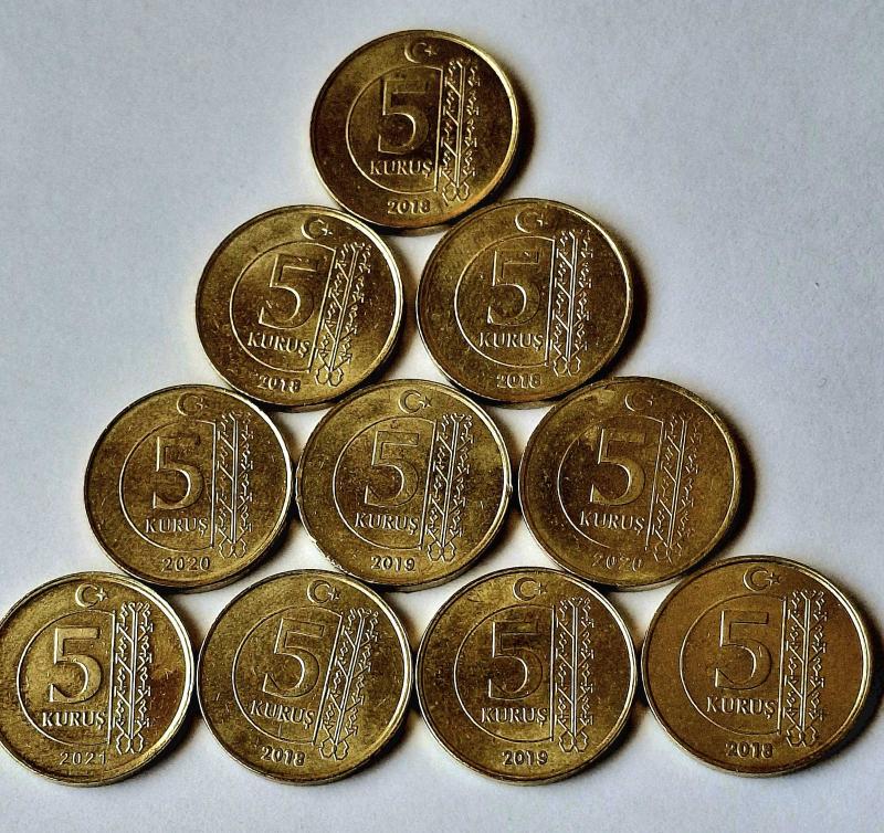 303// 5 Kuruş (2018,19,20,21) 10'lu Lot Çil, 7 ay önce satışa sunulmuştur.