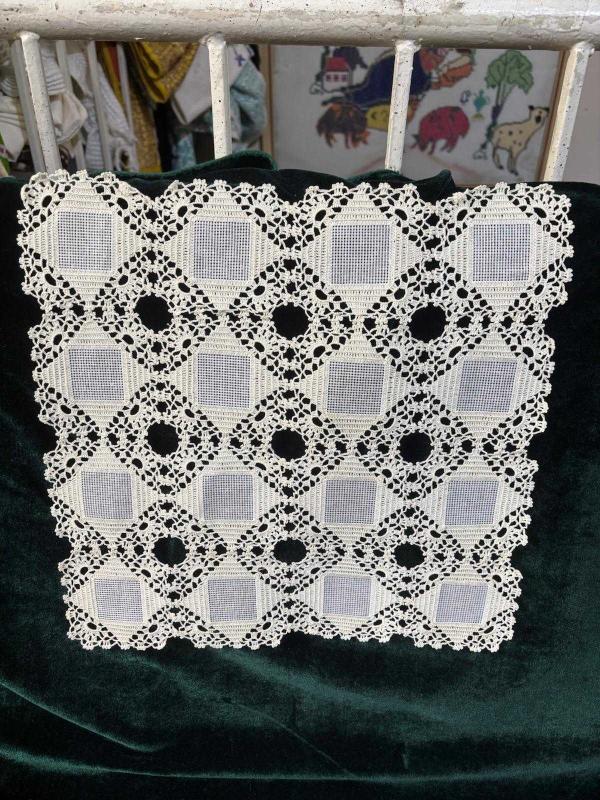 30x30 dantel örtü başlıklı antika/koleksiyon objesi Türkiye menşe’lidir. 1950-1999 arası dönemine aittir.