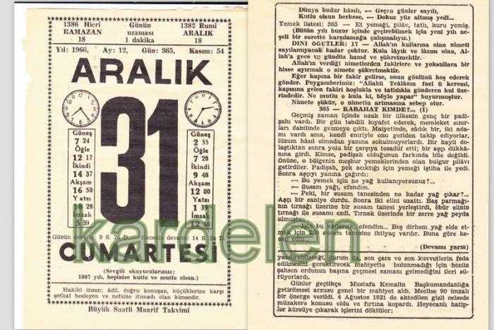 31 ARALIK 1966 SAATLİ MAARİF TAKVİMİ YAPRAĞI, en son 1 yıl önce güncellenmiştir.