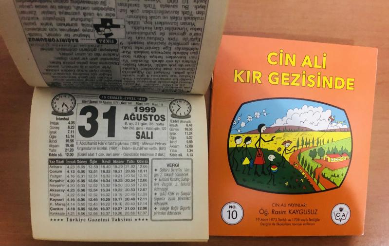 31 Ağustos 1999 orijinal Türkiye gazetesi takvim yaprağı (Cin Ali kitabı hediyeli :), 4 yıl önce satışa sunulmuştur.