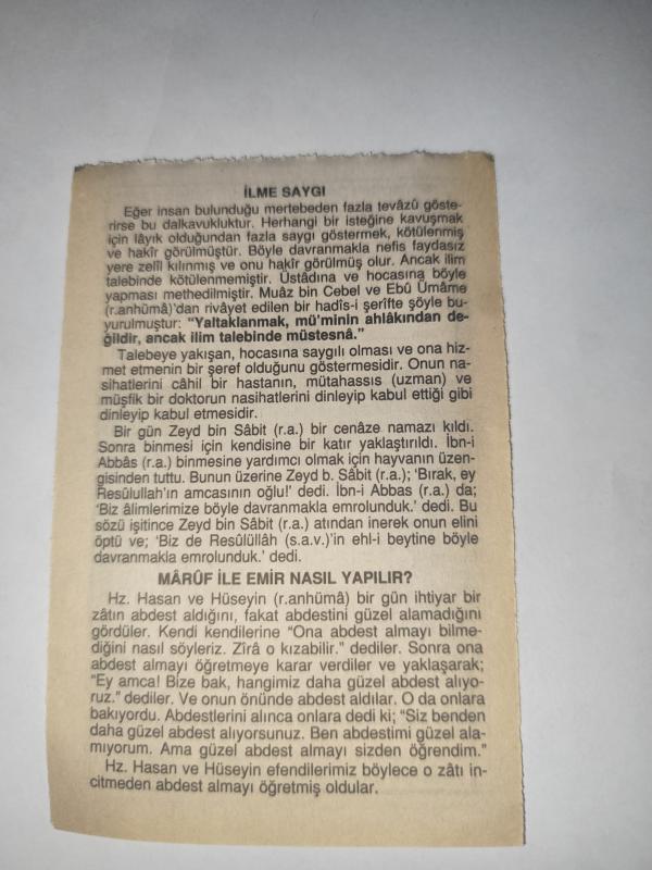 Kitapsız hayat kör,sağır,dilsiz yaşatmaktır.Kitap,zekayı kibarlaştırır.Kitaplar beni ortaya çıkardı.Milletlerin aklı,kitapla gelişir ve büyür.Kimler fazla okuyorsa,az okuyanlara hükmeder.Okumadan geçen bir gün,kaybedilmiş bir gündür.Söz uçar,yazı kalır.Yazı ile saptanmayan her şey,kaybolmuş demektir.Alem unutmuş,kalem (kitap) unutmamış.Bir kitabın içinde birçok ülkeler gezebilirsiniz.En iyi kitapları önceden okuyunuz,çünkü hepsini okuma fırsatını bulamayabilirsiniz.Bizde kitap baş üstünde taşınacak kadar makbuldur.Yazılı kağıdın üzerine basılmaz bile.”Hacı hacıyı Mekke’de,derviş dervişi tekkede bulur,demişler.Alim de alimi bizim çarşıda bulur.”Pirimiz Arslan Kaynardağ’dır,Nizamettin Aktuç’tur,Raif Yelkenci’dir.Gutemberg (1400-1468) matbaayı buldu.