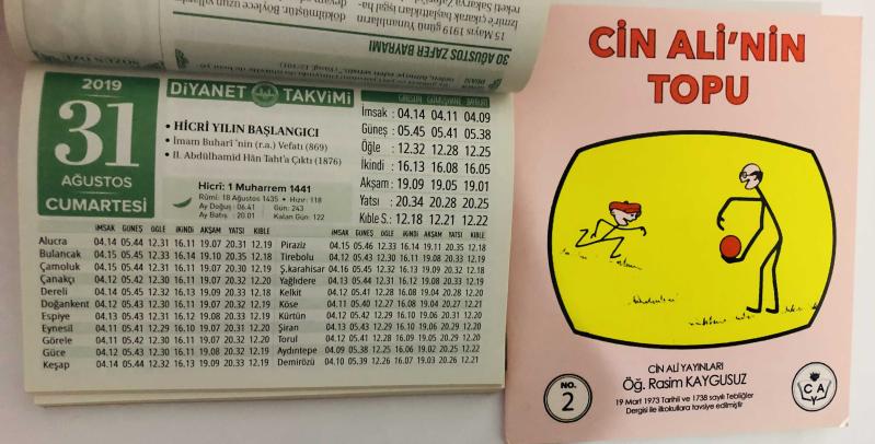 31 Ağustos 2019 hediyelik orijinal Diyanet takvim yaprağı (Cin Ali kitabı hediyeli:), 3 yıl önce satışa sunulmuştur.