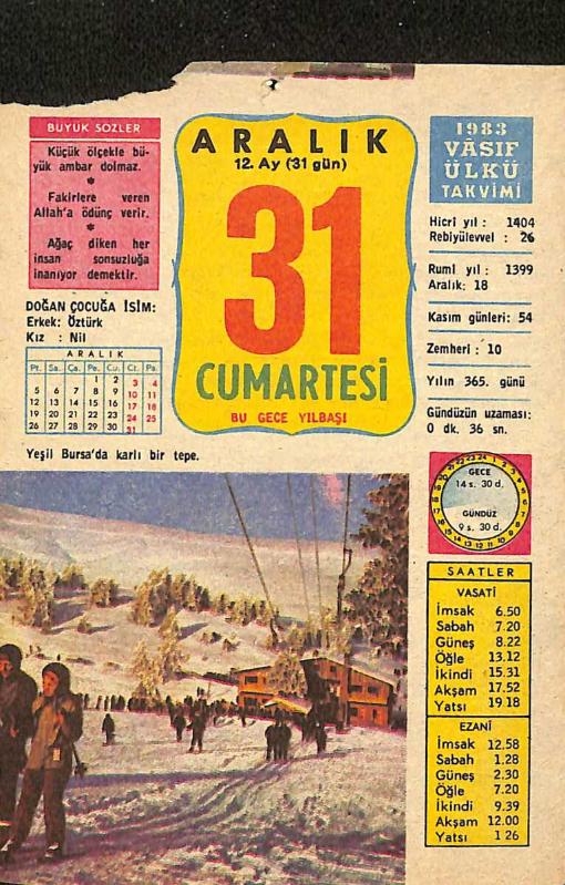 31 Aralık 1983 Takvim Yaprağı - Doğum Günü Hediyesi EFMN13691, en son 18 gün önce güncellenmiştir.