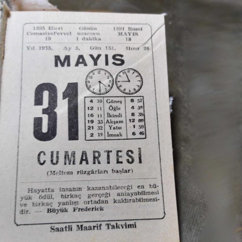 31 MAYIS 1975 SAATLİ MAARİF TAKVİM YAPRAĞI, en son 1 yıl önce güncellenmiştir.