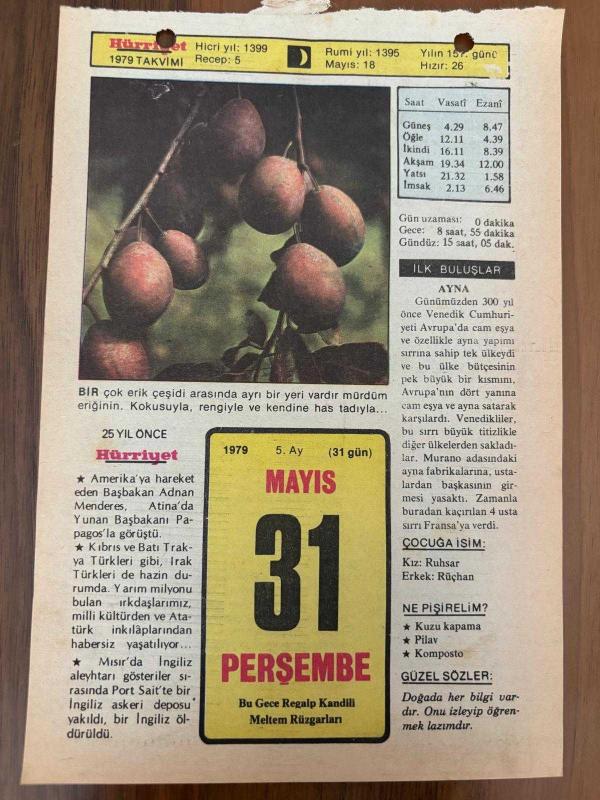 Orijinal takvim yaprağıdır.