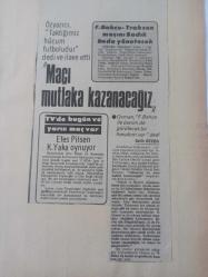 31 Mart 1984 - Fenerbahçe - Trabzon maçını Sadık Deda yönetecek - Özyazıcı, ''Taktiğimiz hücum futboludur'' dedi ve ilave etti - ''Maçı mutlaka kazanacağız'' - Osman, ''Fenerbahçe ile benim de görülecek bir hesabım var'' dedi - Gazete haberi - Tek Yaprak Arkalı Önlüdür adlı eser, Kitap > Süreli Yayınlar > Dergiler > Spor kategorisinde İkinci El olarak satıştadır.