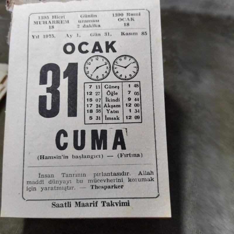31 OCAK 1975 SAATLİ MAARİF TAKVİM YAPRAĞI, en son 1 yıl önce güncellenmiştir.
