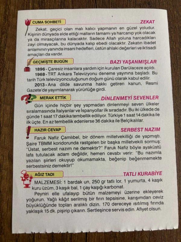 Orijinal takvim yaprağıdır.