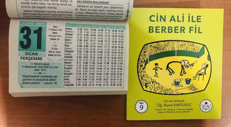 31 Ocak 2002 hediyelik orijinal Semerkand takvim yaprağı (Cin Ali kitabı hediyeli:) başlıklı ürün, Efemera, Müzik, Sinema > Belge ve Evraklar > Takvimler kategorisi altında İkinci El olarak satılmaktadır.