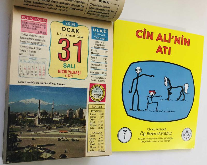 31 Ocak 2006 hediyelik orijinal Ülkü takvim yaprağı (Cin Ali kitabı hediyeli:) başlıklı ürün, Efemera, Müzik, Sinema > Belge ve Evraklar > Takvimler kategorisi altında İkinci El olarak satılmaktadır.