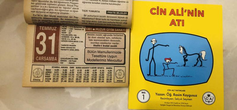 31 Temmuz 1991 orijinal Huzur takvim yaprağı (Cin Ali kitabı hediyeli :), 2 yıl önce satışa sunulmuştur.
