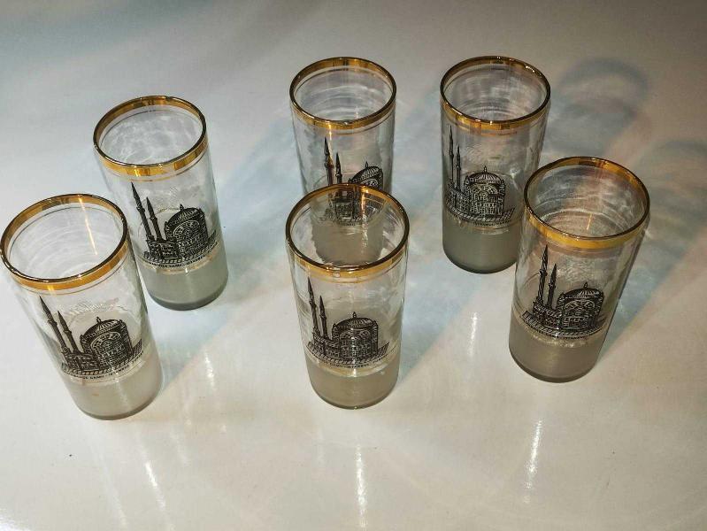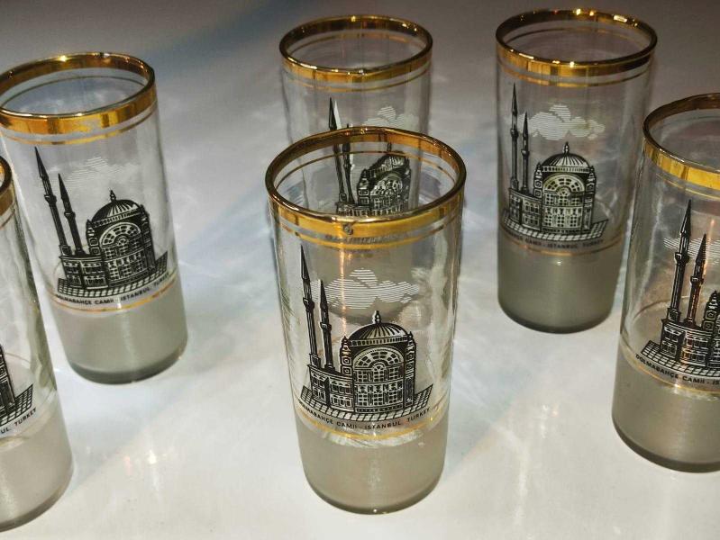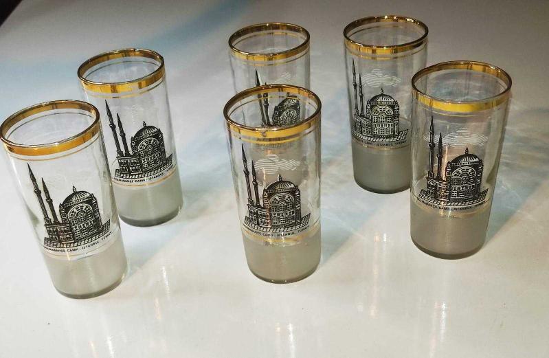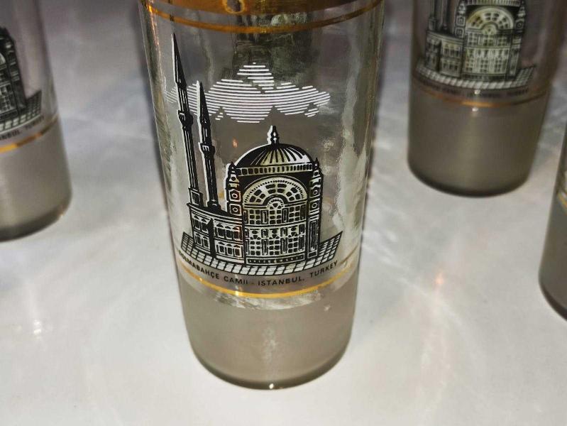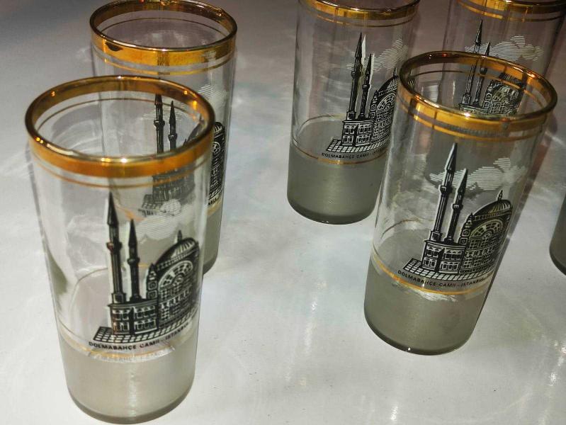 ESKİLERDEN DOLMABAHÇE CAMİ RESİMLİ 6 AD LİMONATA BARDAĞI ÇAPI 5.5 CM YÜK 12 CM