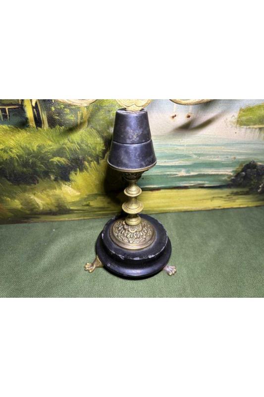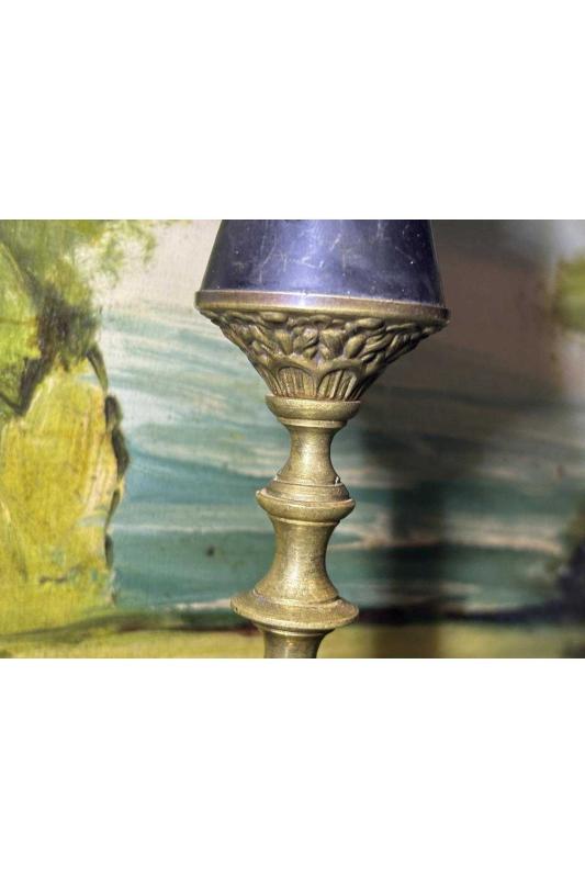 32 cm boyunda antika Avrupa pirinç şamdan başlıklı antika/koleksiyon objesinin menşei belirtilmemiştir. Objenin ait olduğu dönem bilinmeketedir.