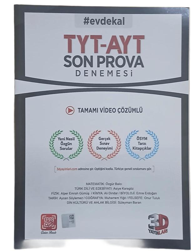 3D Yayınları TYT-AYT Son Prova Denemesi-2 Adet Deneme adlı eser, Kitap > Sınav ve Ders Kitapları > Ders Kitapları > Üniversite kategorisinde Yeni olarak satıştadır.