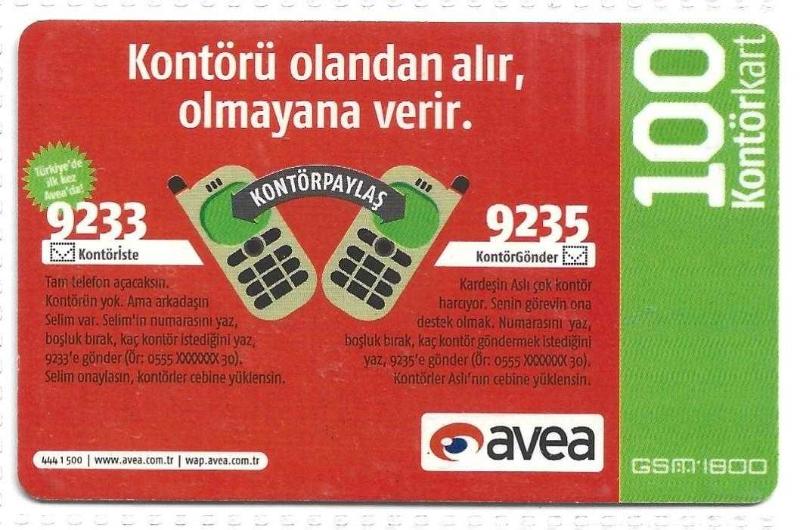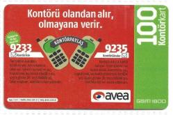 KONTÖR YÜKLEME KARTI ( AVEA - 100 Kontör kart ) *** TEMİZ ve NADİR *** ( RESİM TEMSİLİDİR )