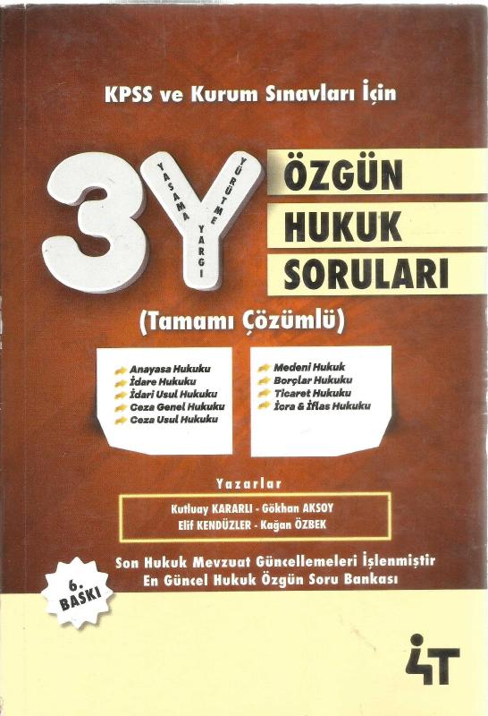 3Y ÖZGÜN HUKUK SORULAR TAMAMI ÇÖZÜMLÜ 6.BASKI adlı eser, Kitap > Sınav ve Ders Kitapları > Sınavlara Hazırlık > KPSS kategorisinde İkinci El olarak satıştadır.