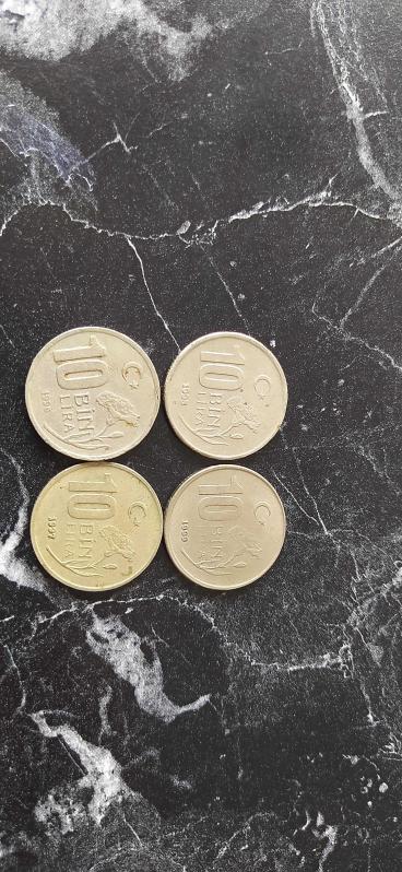 4 ADET 10 BİN LİRA MADENİ PARA ÇİL ALTI KOLEKSİYONLUK. TARİHLER: 1996-97-98-99, 1 yıl önce satışa sunulmuştur.