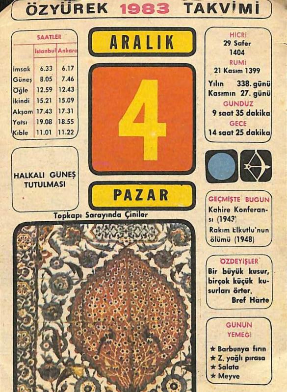 4 Aralık 1983 Takvim Yaprağı - Doğum Günü Hediyesi EFM(N)11528, en son 20 gün önce güncellenmiştir.