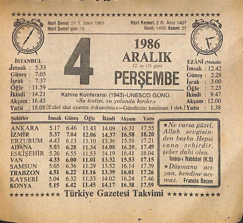 4 Aralık 1986 Takvim Yaprağı - Doğum Günü Hediyesi EFMN14869, en son 22 gün önce güncellenmiştir.