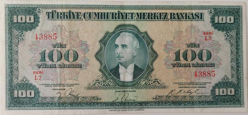 4.EMİSYON 1.TERTİP 100 YÜZ TÜRK LİRASI SERİ L7 43885 NATÜREL KAĞIT PARA ÇOK NADİRDİR, en son 8 ay önce güncellenmiştir.