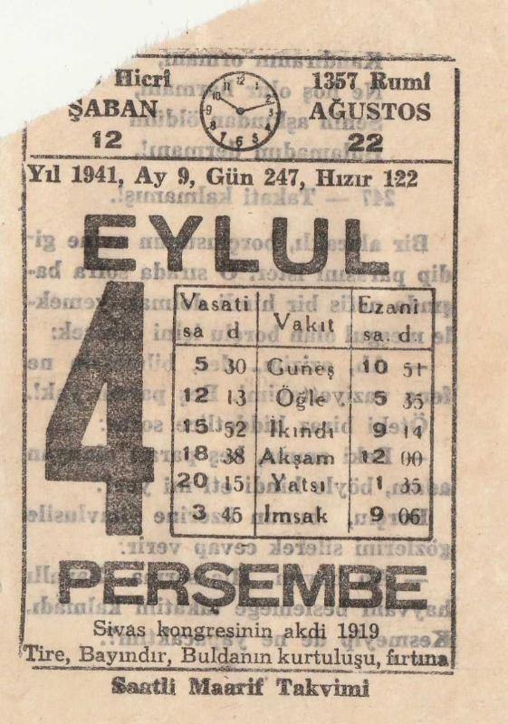 4 EYLÜL 1941 SAATLİ MAARİF TAKVİMİ YAPRAĞI, en son 2 ay önce güncellenmiştir.