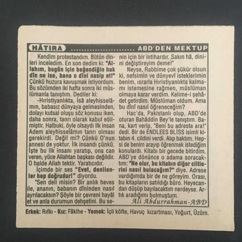 Gazeteler,dergiler,kitaplar harika hediyelerdir.Otantik,orijinal,nadir ve eski gazeteler,dergiler,kitaplar,efemeralar,objeler.Gazeteler bir aynadır.Kitaplar sadece okumak için değil birlikte yaşamak içindir . Kelimeler , notalar , sayılar kardeştirler.Kitaplar insanı binbir gözlü yapar.