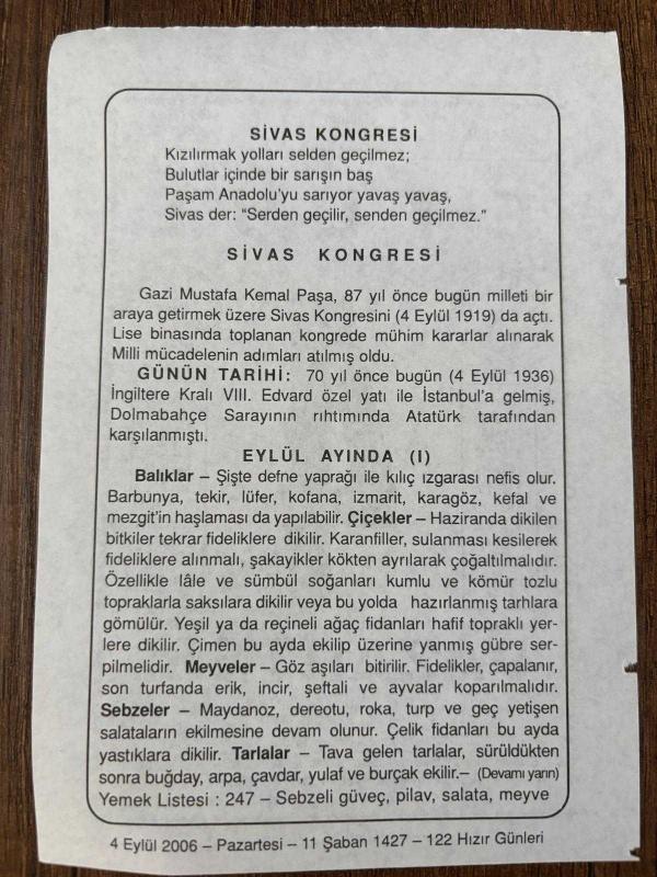 Orijinal takvim yaprağıdır.