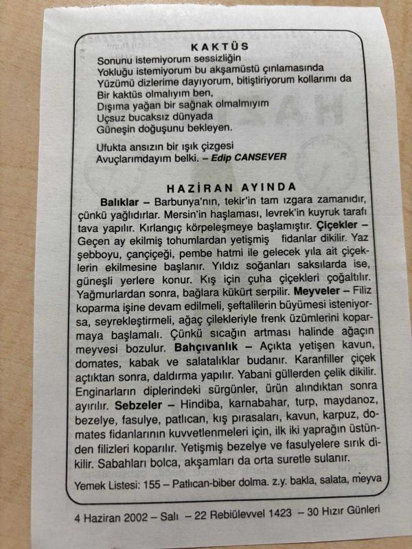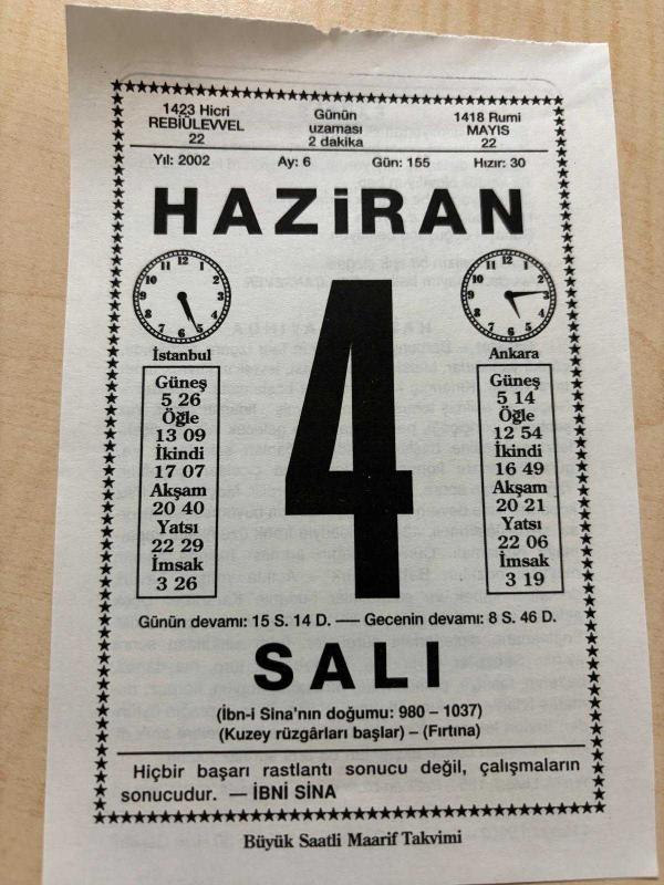 4 HAZİRAN 2002 - TAKVİM YAPRAĞI - DOĞUM GÜNÜ HEDİYESİ - BÜYÜK SAATLİ MAARİF TAKVİMİ - İBNİ SİNA - EDİP CANSEVER - HAZİRAN AYINDA ; MEYVELER - BAHÇIVANLIK - SEBZELER - BALIKLAR - ÇİÇEKLER, en son 8 ay önce güncellenmiştir.