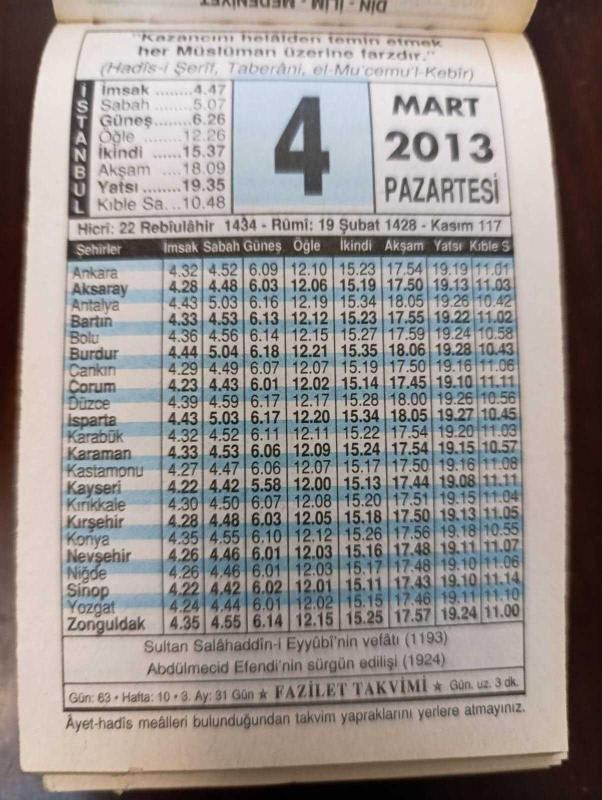 4 MART 2013 TAKVİM YAPRAĞI, en son 1 yıl önce güncellenmiştir.